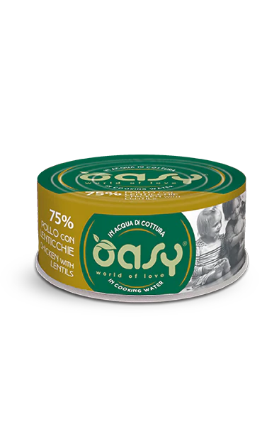 Attualmente, una delle varianti popolari è Pollo con Lenticchie, ma Oasy offre altri gusti nella gamma More Love.