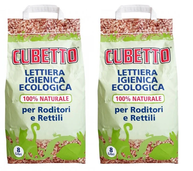 Cubetto è la lettiera naturale in pellet vegetali per conigli e rettili, realizzata con fibre di legno non trattato 100% biodegradabili. Formula consolidata che garantisce controllo efficace degli odori, massimo assorbimento e smaltimento ecologico. Il formato 2×8 litri offre scorta prolungata per chi cerca praticità e rispetto dell’ambiente.