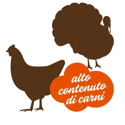 - Alto contenuto di carni: 45% carni e derivati, 8% pollo, 8% tacchino.