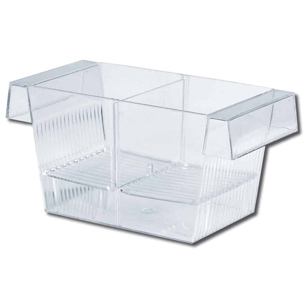 AMTRA SALA PARTO 3 IN 1 CON COPERCHIO è una vaschetta in plastica galleggiante ideale per isolare all’interno pesci di piccole dimensioni. Può essere utilizzata sia per la nascita e crescita di avannotti sia per mantenere temporaneamente pesci adulti che necessitano di tranquillità o cure particolari. Se utilizzata come nursery, grazie allo speciale divisorio interno, si può separare una femmina di specie ovovivipara in modo che alla nascita gli avannotti non siano predati dalla madre o da altri pesci. Rimosso il divisorio la vaschetta potrà essere poi utilizzata per l’accrescimento dei pesci stessi. Ideale come vasca di quarantena per la riabilitazione di pesci dopo la guarigione da malattie. Il coperchio in dotazione eviterà che i pesci possano uscire o entrare saltando nella sala parto. Tramite le griglie laterali viene sempre garantito il ricircolo dell’acqua evitando così l’accumulo di inquinanti. Misura 21 x 10,5 x 10 cm