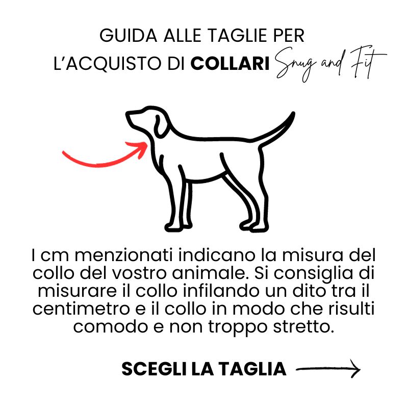 I collari Snug & Fit sono prodotti artigianalmente, pertanto puรฒ capitare a volte che non siano disponibili a magazzino. Se il prodotto non รจ disponile, una volta scelta la taglia, comparirร la scritta “Disponibile su Ordinazione”, in questo caso รจ possibile ordinare, e l’articolo verrร prodotto appositamente. Occorrono circa 15 gg lavorativi. Speriamo tu possa comprendere e apprezzare la qualitร dei nostri prodotti.