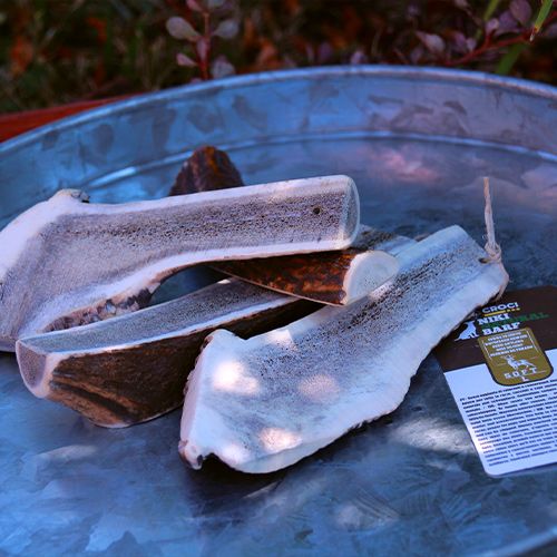 - Le corna di cervo di Niki Natural Barf provengono dalla muta dei palchi dei cervi, un processo naturale che non comporta alcuna forma di violenza sugli animali.