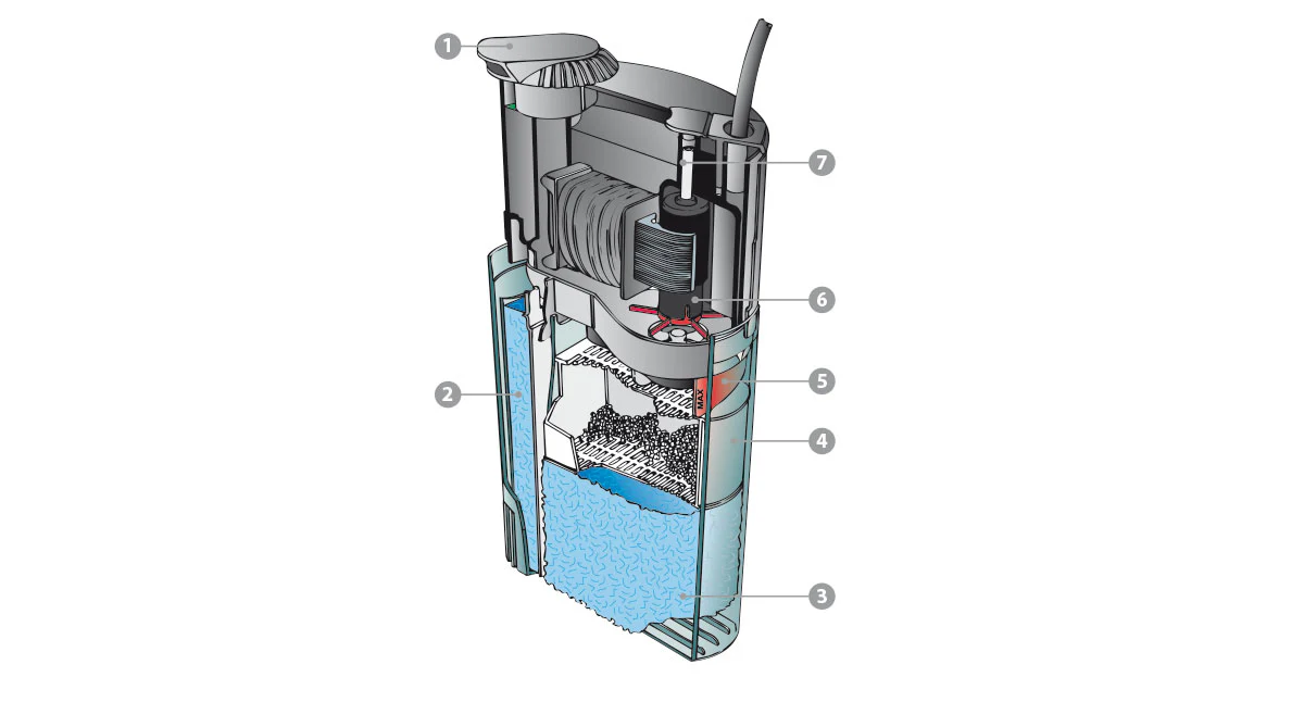 - Facilità di Manutenzione: Gli elementi filtranti dei tre stadi sono fisicamente separati, consentendo la pulizia e il ricambio individuale. Le colonie batteriche del secondo stadio possono stabilirsi in modo efficiente per un filtraggio biologico duraturo.
