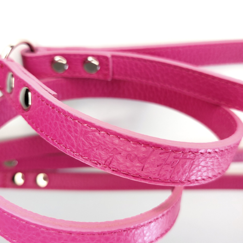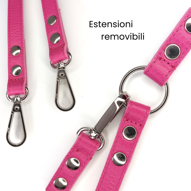 Guinzaglio doppio Snugandfit in vera pelle fucsia