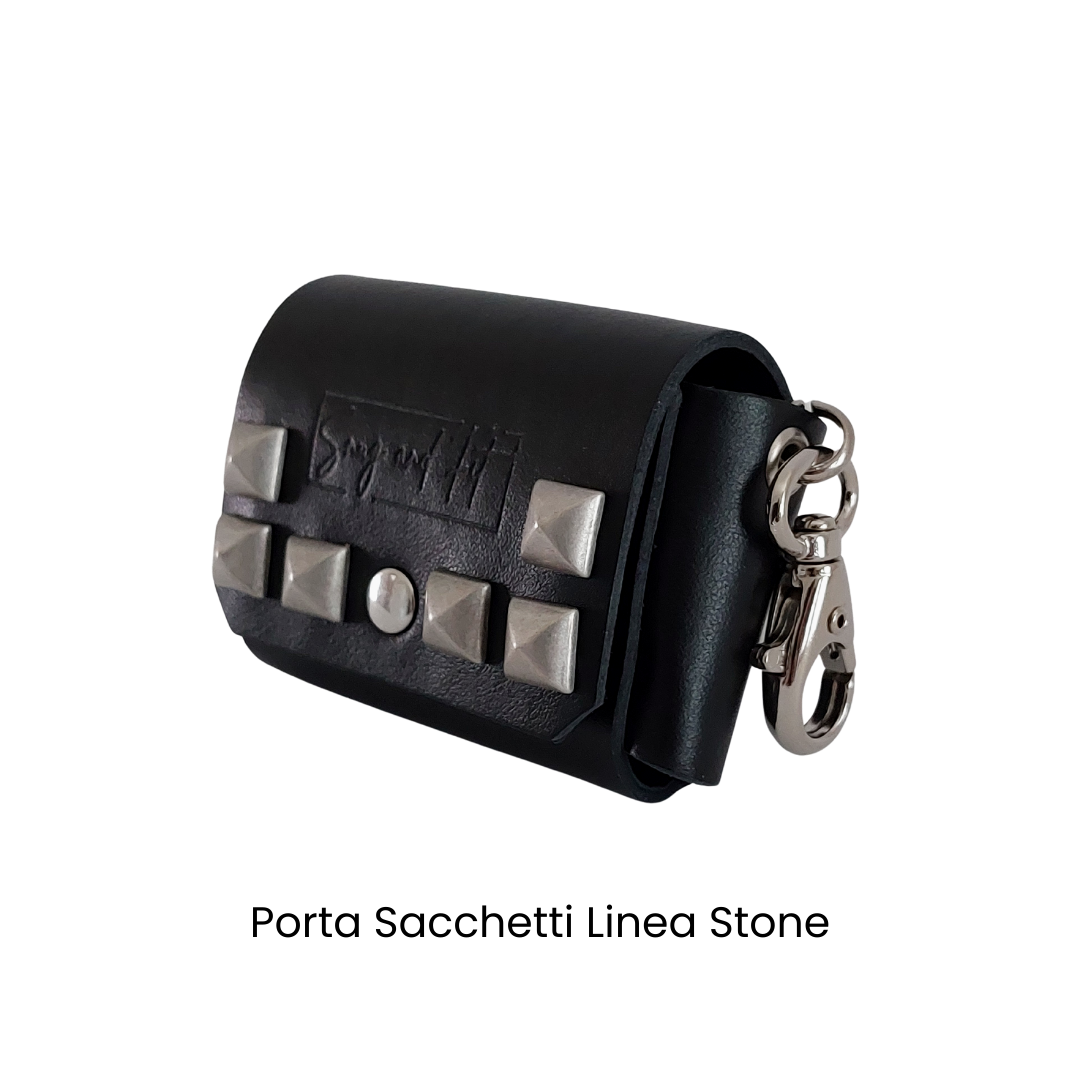 Porta Sacchetti per cani Linea Stone in vera pelle con borchie