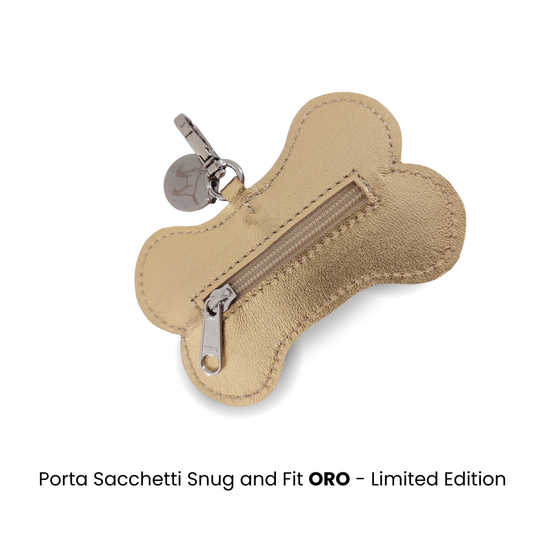Porta Sacchetti Snug&Fit a forma di Osso in vera pelle Oro