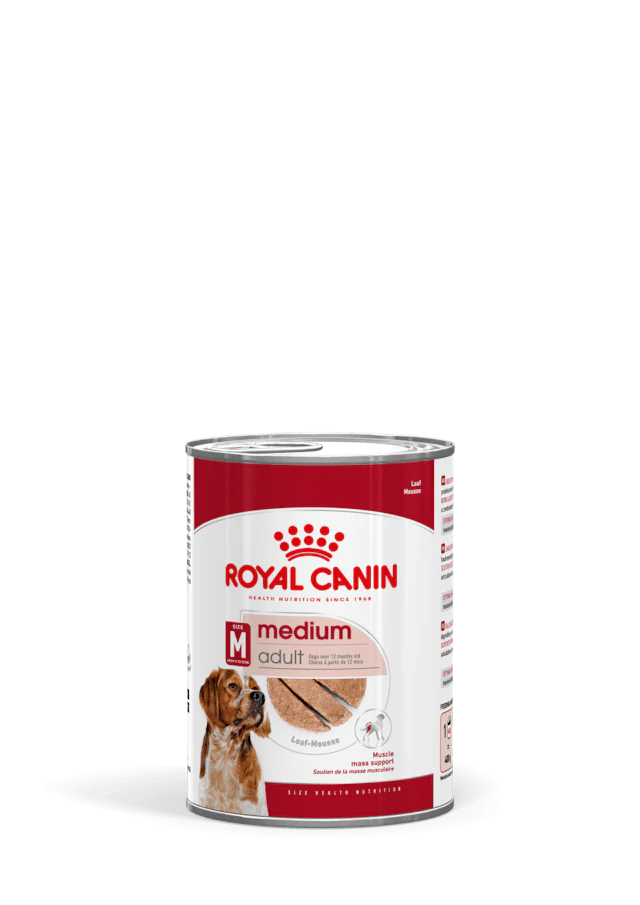 Royal Canin Medium Adult Paté è un alimento umido completo e bilanciato, formulato per cani adulti di taglia media (peso tra 11 e 25 kg) di età compresa tra i 12 mesi e i 7 anni. Ideale per soddisfare le esigenze specifiche di questa fase della vita, favorisce la salute generale grazie a ingredienti di alta qualità.