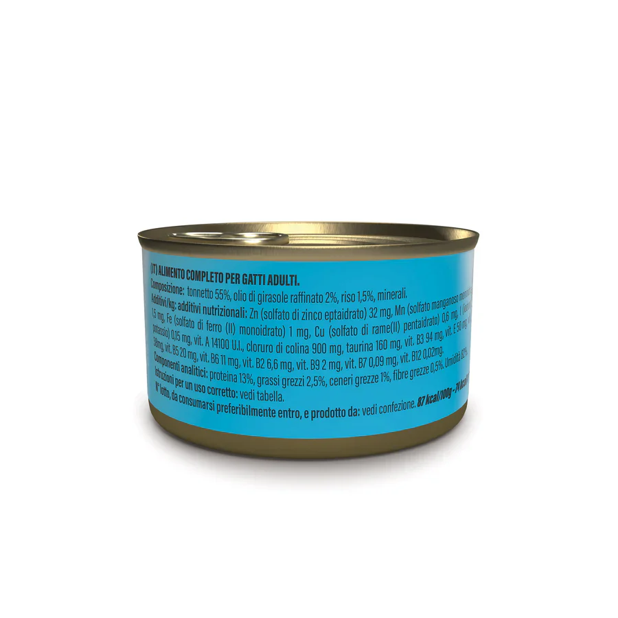 Alimento umido completo per gatti adulti, con veri filetti di tonnetto in gelatina. Ricetta naturale con pochi ingredienti, arricchita con vitamine e minerali. Apporto bilanciato di proteine e umidità per supportare benessere e idratazione. Senza coloranti né conservanti aggiunti.