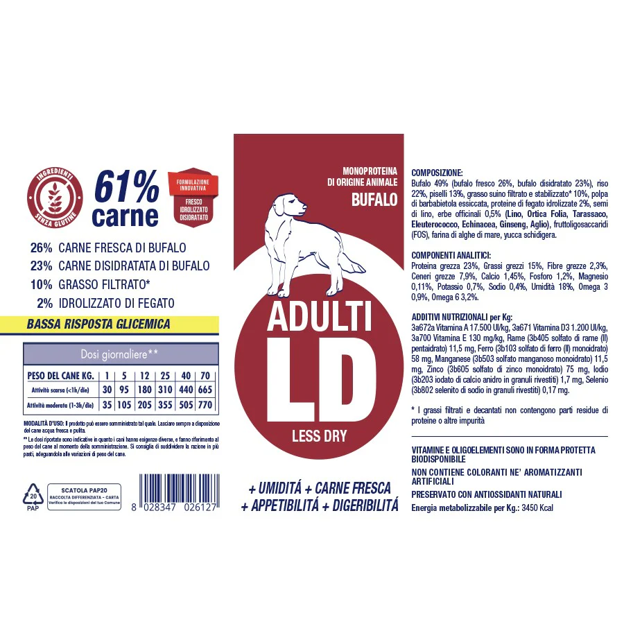 Essendo a base di carne di bufalo, spesso più digeribile rispetto ad altre proteine, potrebbe essere una buona scelta per cani con sensibilità alimentare.