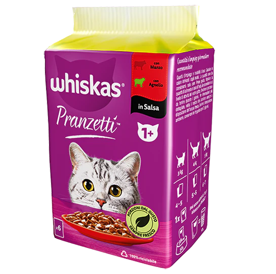 Whiskas Pranzetti Carni Miste è specificamente formulato per gatti adulti. Per i gattini e i gatti anziani, si raccomanda di scegliere prodotti adatti alle loro esigenze nutrizionali specifiche.